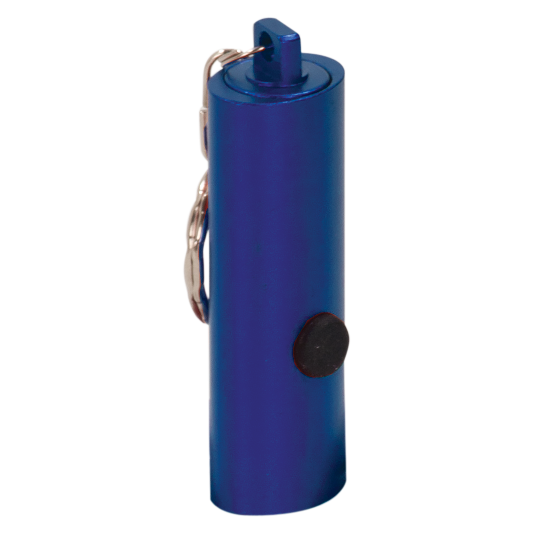 Custom Engraved Flashlight: Royal Blue Anodized aluminum LED flashlight – ON/OFF button is on the back side of the flashlight. Access batteries by unscrewing the silver portion of the flashlight – Includes batteries.